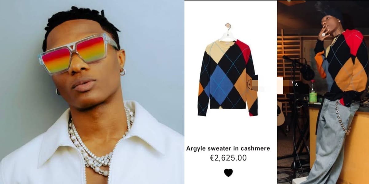 Wizkid spends big on fashion, wears ₦4.2 million Loewe Argyle sweater