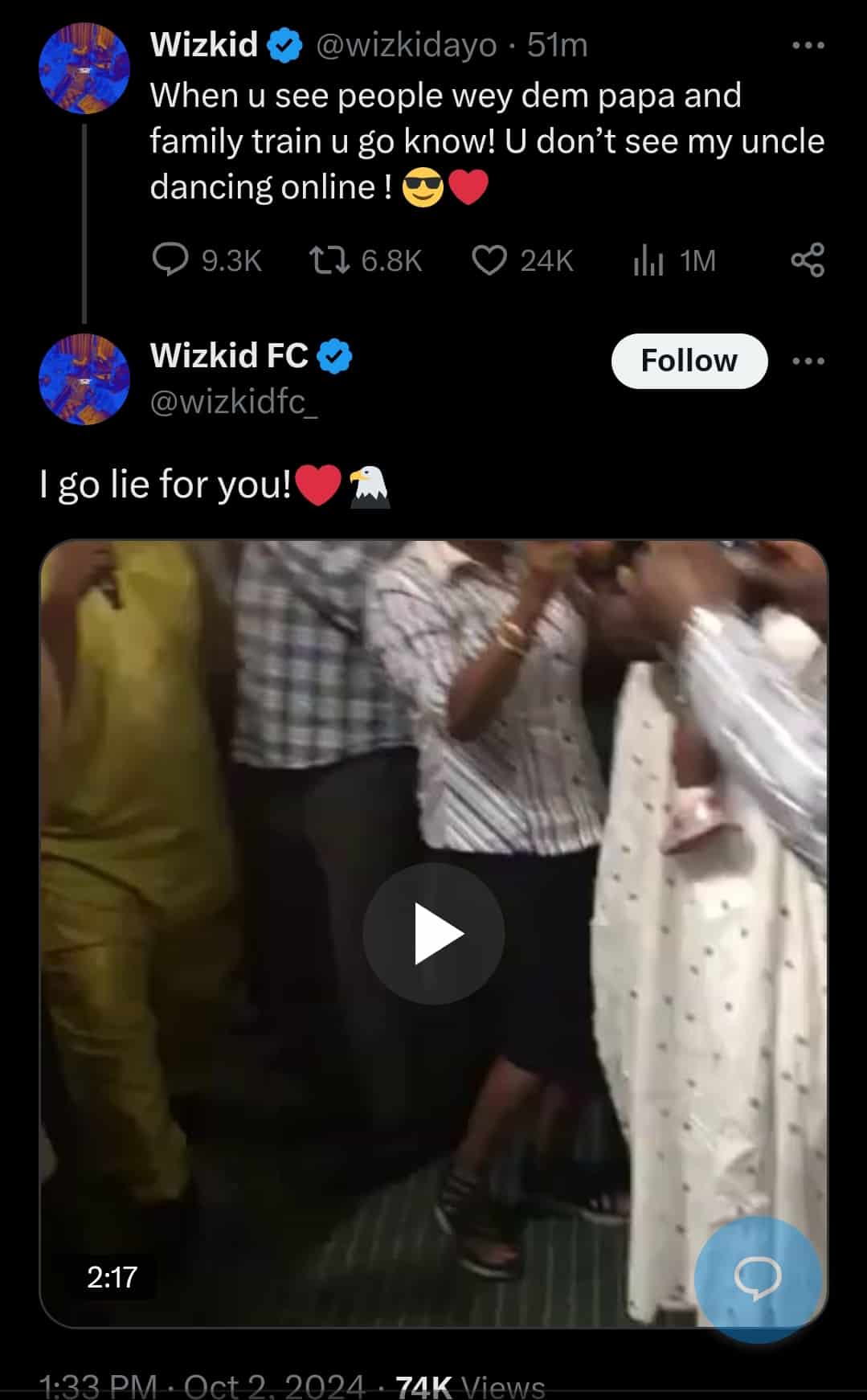 — Wizkid (@wizkidayo) October 2, 2024