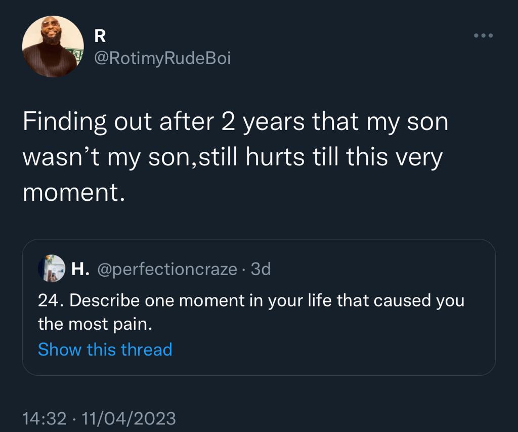 In response, Rotimy shared that finding out his son is not his has to be the most painful part of his life. This was after 2 years of assuming that he had a son.
