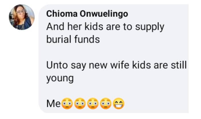 And her kids are to supply burial funds unto say new wife kids are still young”