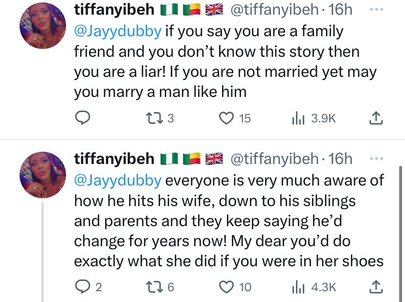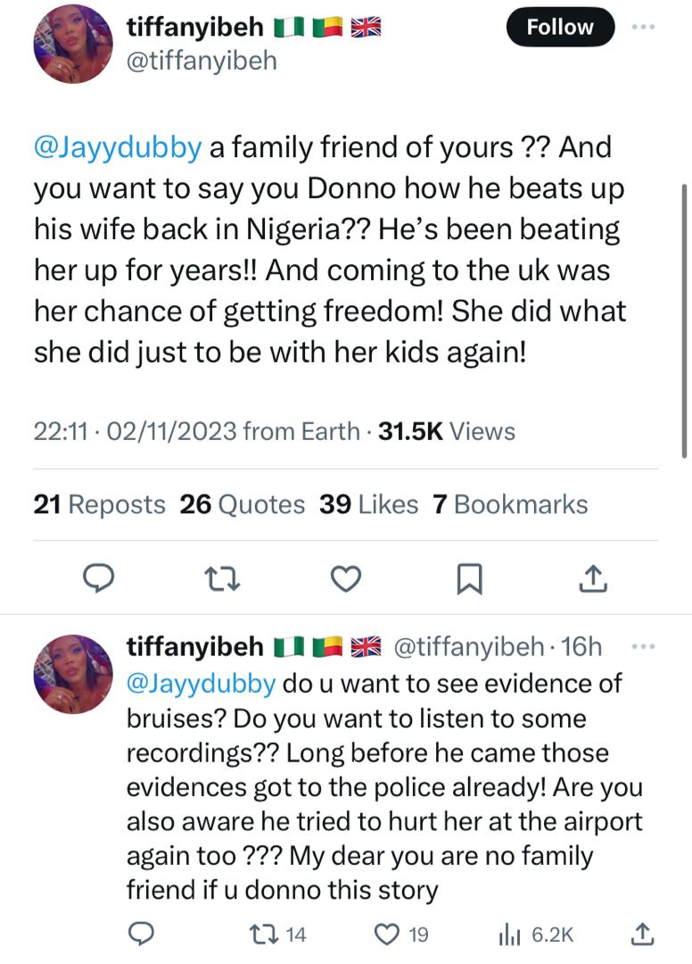 She accused him of physically and emotionally abusing her at the slightest provocation while they were in Nigeria.