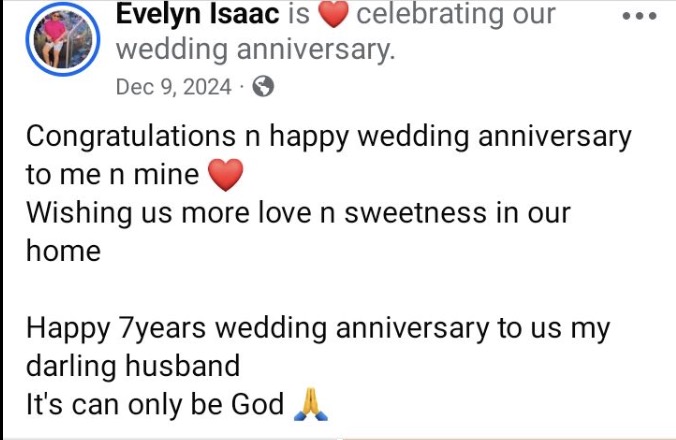 The revelation has come as a shock to many, as the couple celebrated their seventh wedding anniversary just two months ago, in December 2024. In a heartfelt anniversary message at the time, Evelyn had expressed prayers for continued love and happiness in their home.