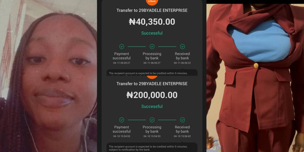 She paid ₦200,000 on April 10 and the remaining ₦40,350 the following day.