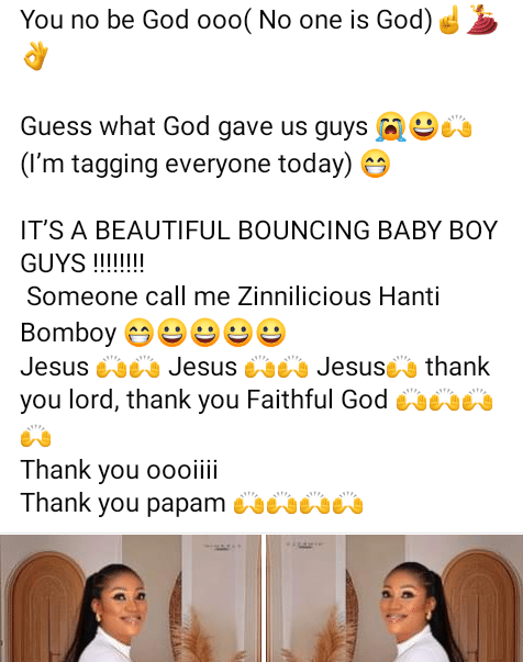 IT’S A BEAUTIFUL BOUNCING BABY BOY GUYS !!!!!!!! Someone call me Zinnilicious Hanti Bomboy