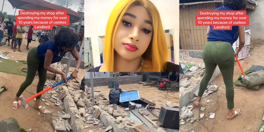 A Nigerian woman has taken to social media to express her frustration after demolishing a shop she claimed to have spent millions of naira on, following a quit notice issued by her landlord.