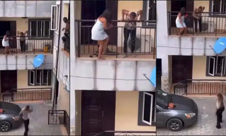 She tried to enter the house but was locked out by her husband who attempted to escape the side chick through the balcony of the first floor.