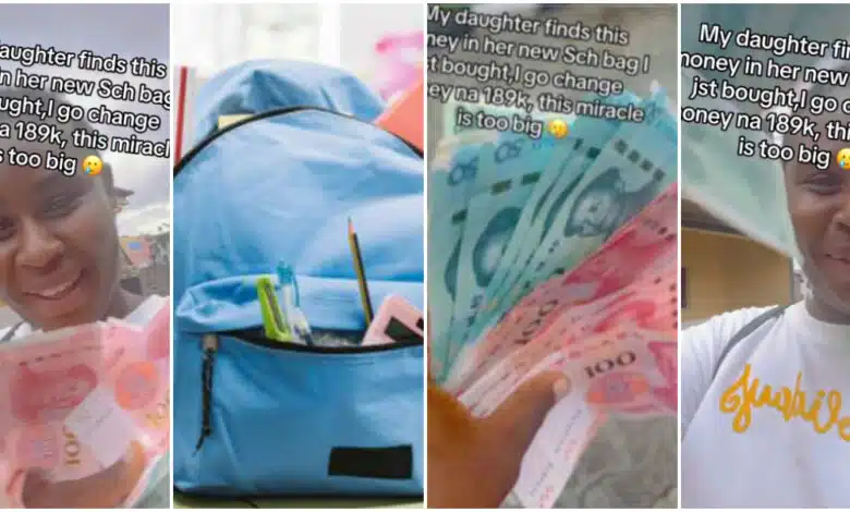 Woman overjoyed as she finds Chinese Yuan worth N200K in child’s new school bag (Video)