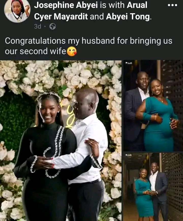 The woman, identified as Josephine Abyei on Facebook, expressed excitement about her husband’s decision to take a second wife.