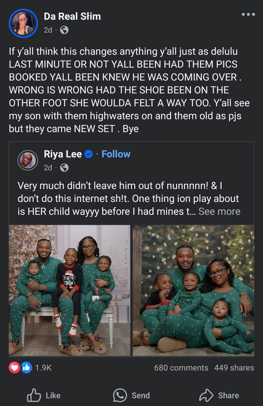 “Very much didn’t leave him out of nunnnnn! & I don’t do this internet sh!t. One thing ion play about is HER child wayyy before I had mines to!!. His daddy couldn’t find any [matching pajamas] and we already had our pjs.”