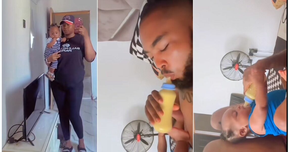 Woman who asked husband to babysit child returns to see him drinking baby’s milk