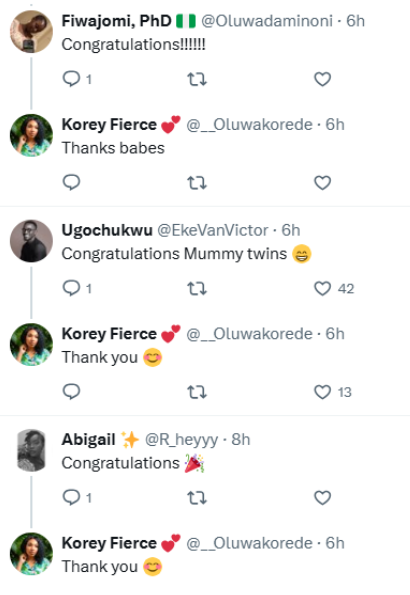 A Nigerian woman, Oluwakorede, has turned heads as she welcomes a set of twins, five years after publicly affirming her desire to be called “Mummy Twins.”