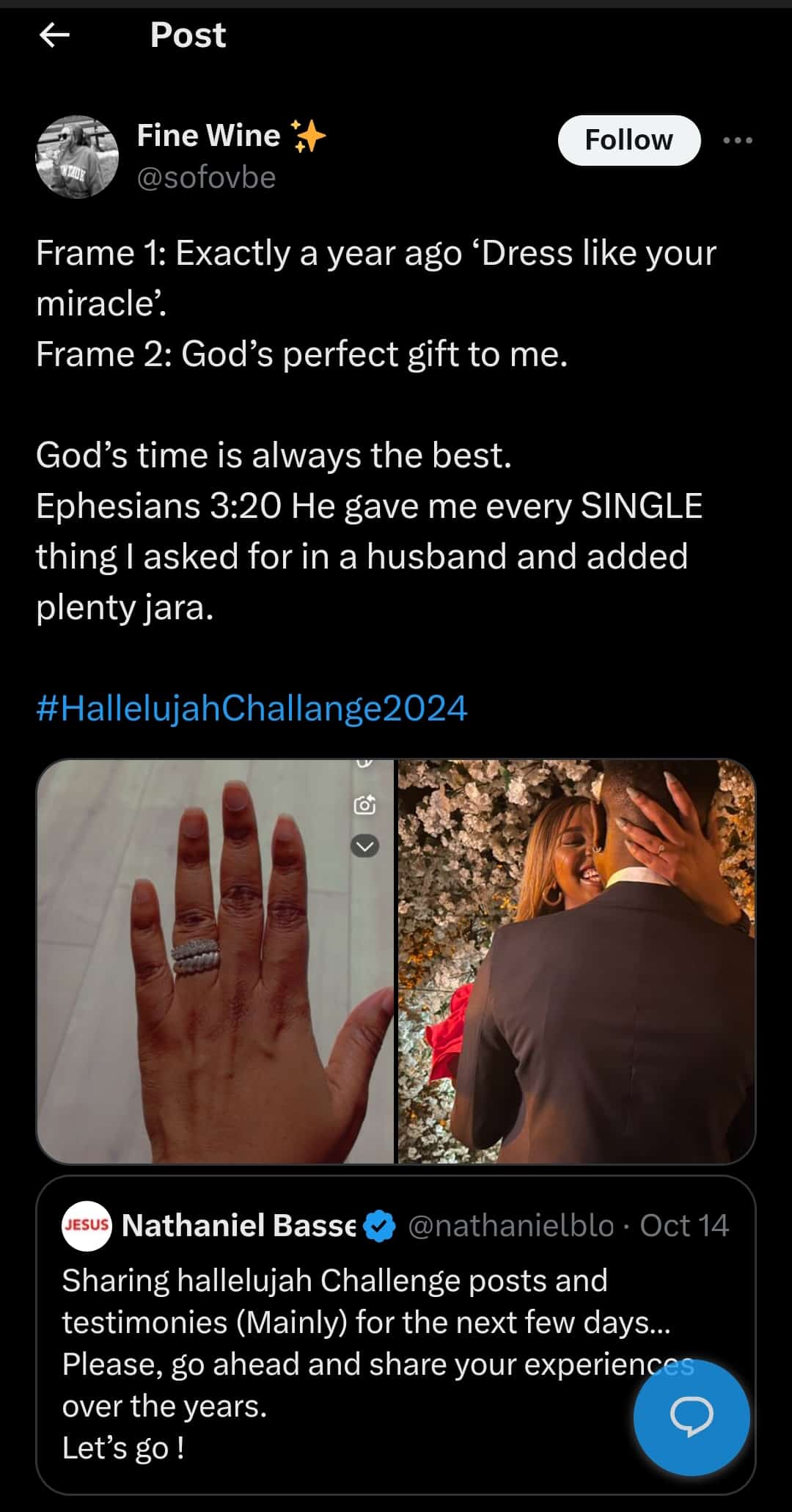 A Nigerian woman who dressed as a bride in 2023, despite being single, and prayed for a husband during the Hallelujah Challenge, is now celebrating as her prayers have been answered.