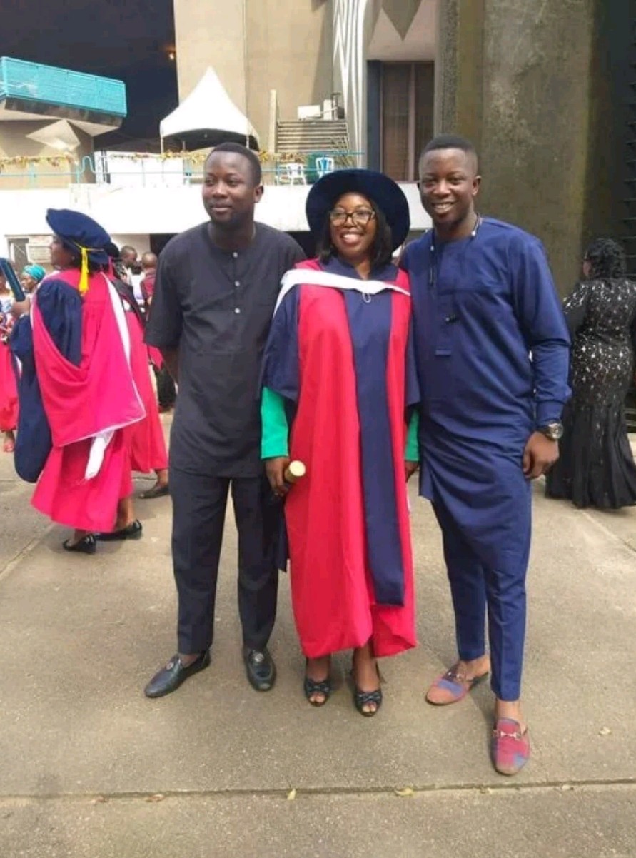 A Nigerian Woman has who returned to school after birthing four kids has bagged her BSC, MSC and now a PH.D.