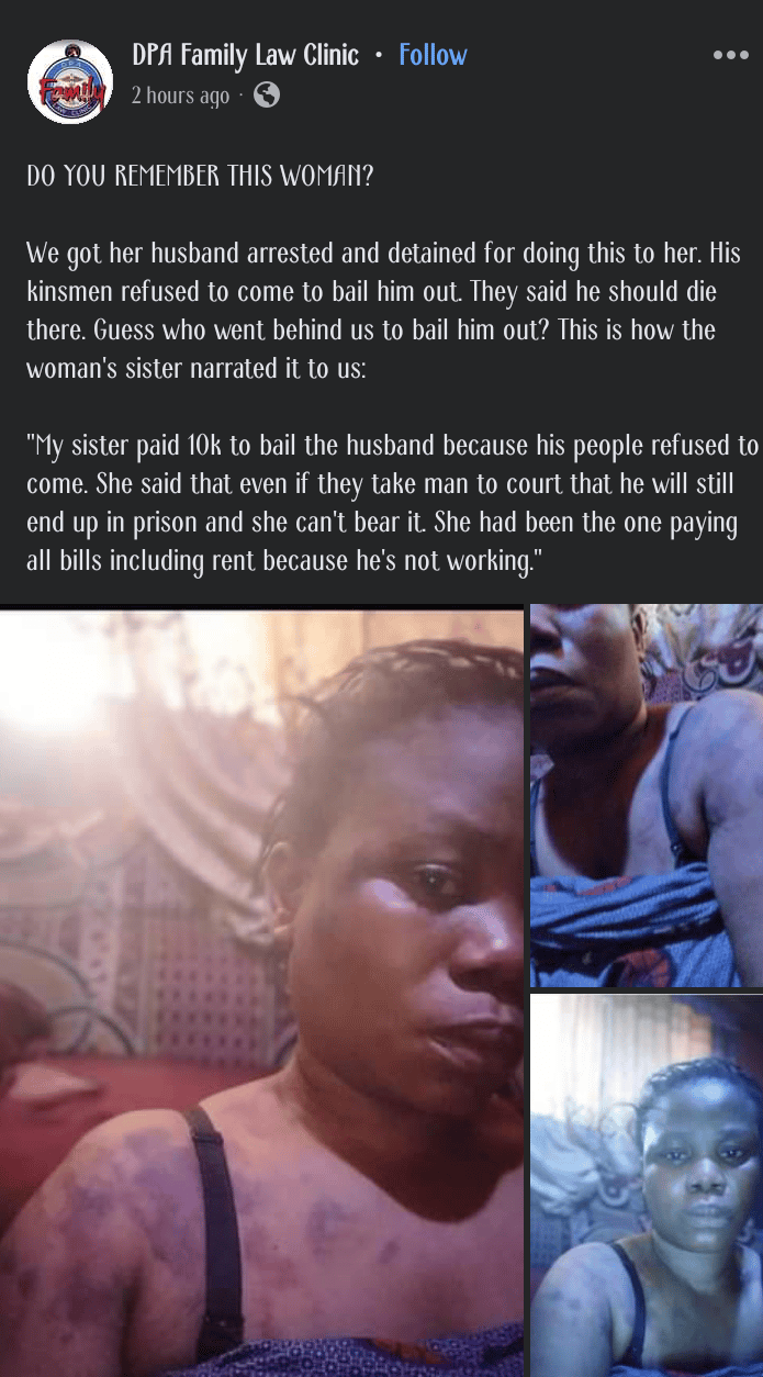 “DO YOU REMEMBER THIS WOMAN? We got her husband arrested and detained for doing this to her. His kinsmen refused to come to bail him out. They said he should die there. Guess who went behind us to bail him out?