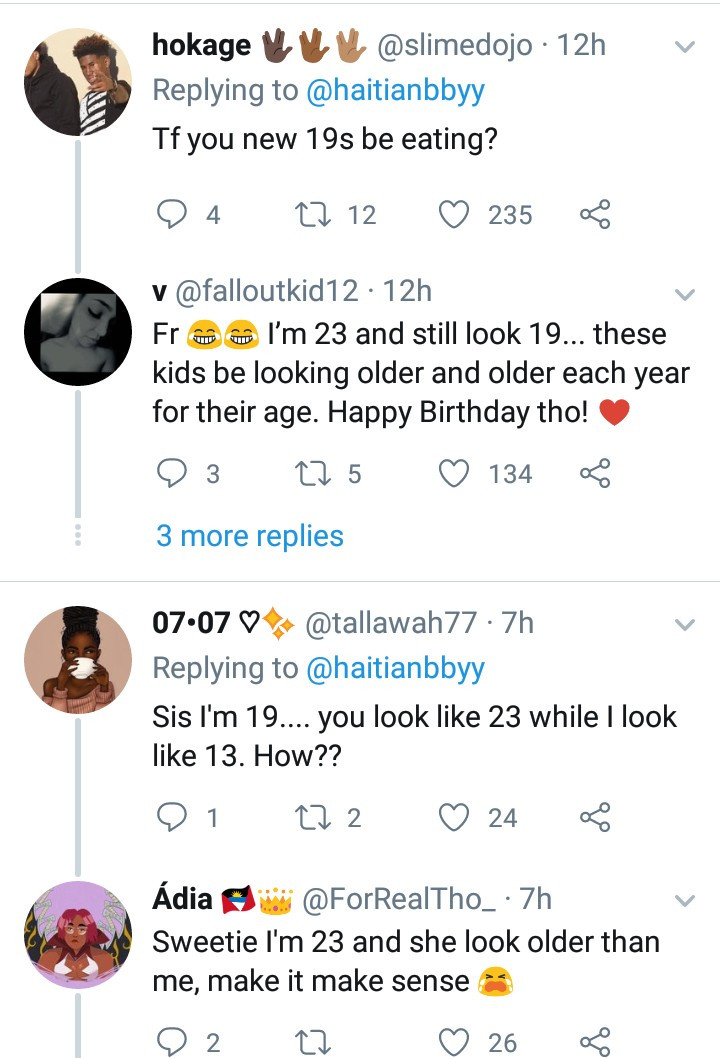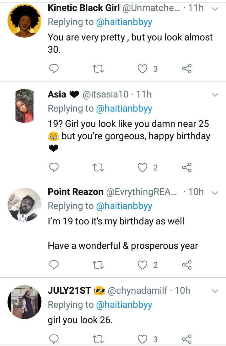 While some look younger than their age, others look older than their actual age. A 19-year-old lady who recently shared her birthday photos online, falls in the second category.
