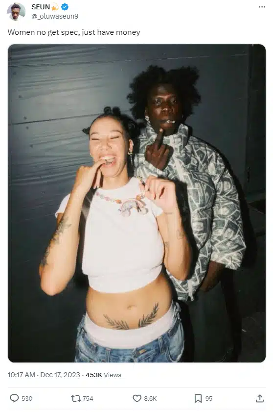 A Twitter user Seun has caused a stir after she asserted that women don’t always have certain tastes in men using Seyi Vibes as a case study.