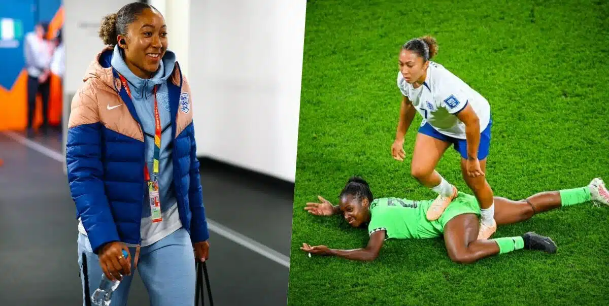 The ongoing Round 16 Women’s World Cup match between Nigeria and England has taken a different turn with Chelsea women star, Lauren James getting a red card for stepping on Super Falcons player, Michelle Alozie.