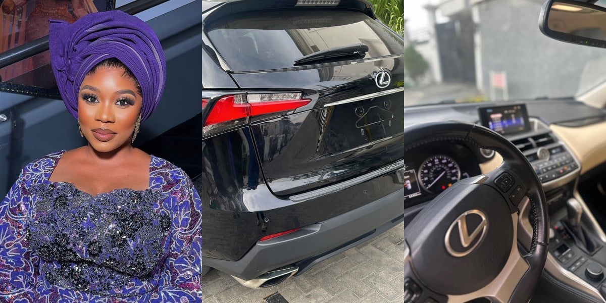 Popular Nigerian movie actress, Wumi Toriola celebrates as she acquires a new Lexus car.