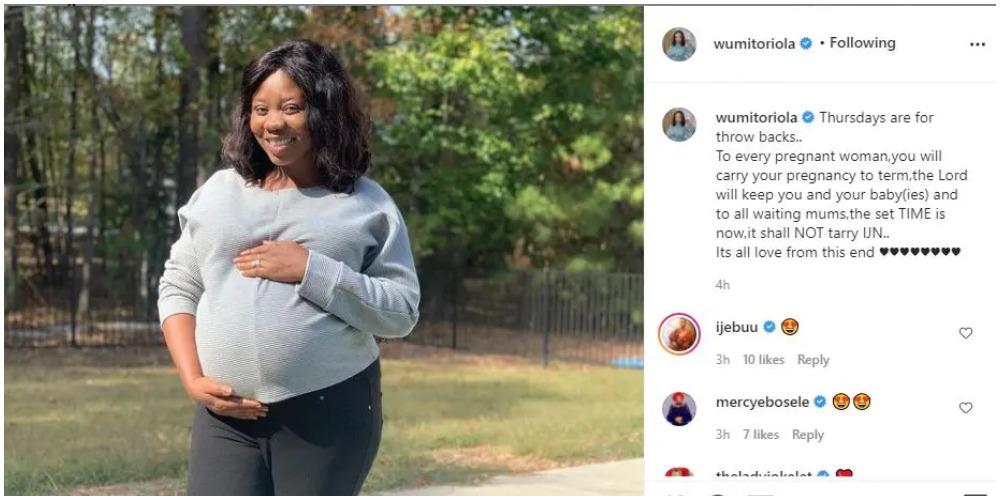 Wunmi Toriola took to the photo and video sharing application to share a throwback photo of herself during her pregnancy and decided to use it as a point of contact to those in the same situation.