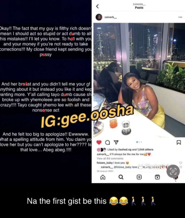 “Y’all calling Tayo dumb cause she broke up with Yhemoleee are so foolish and crazy. Tayo caught Yhemo Lee with all those nonsense act.
