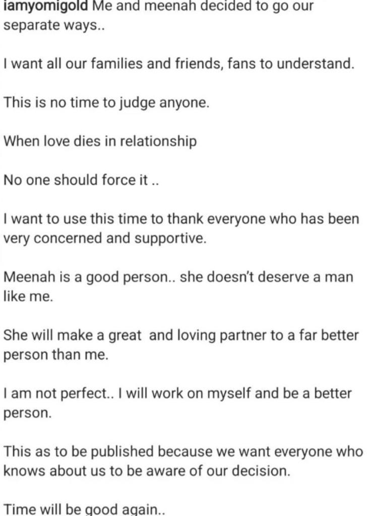 According to him, love does die and relationships should not be forced. Yomi Gold additionally asked the public not to judge anyone