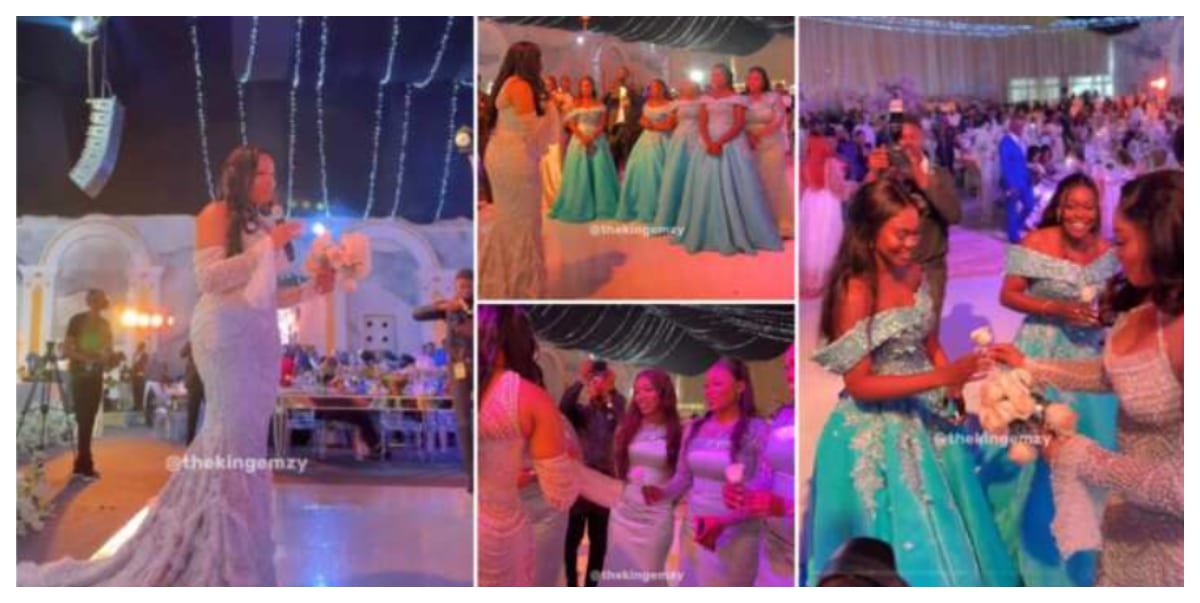 A thoughtful bride earned the admiration of netizens after a video of her unique bouquet distribution to all her single bridesmaids went viral on TikTok.