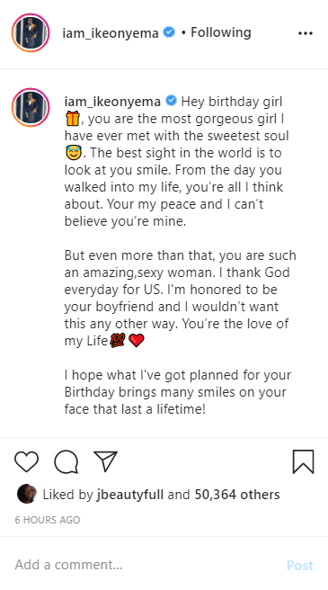 But even more than that, you are such an amazing,sexy woman. I thank God everyday for US. I’m honored to be your boyfriend and I wouldn’t want this any other way. You’re the love of my Life?❤️