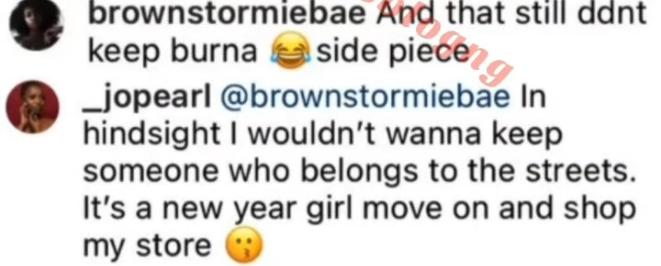 Speaking on why she couldn’t keep Burna, Jopearl dragged Burna saying he belongs to the streets and she wouldn’t want to keep a man who belongs to the streets.