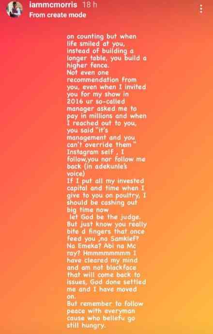 MC Morris added that he is yet to receive any recommendation from Simi and when he invited her for his show, she demanded millions from him.