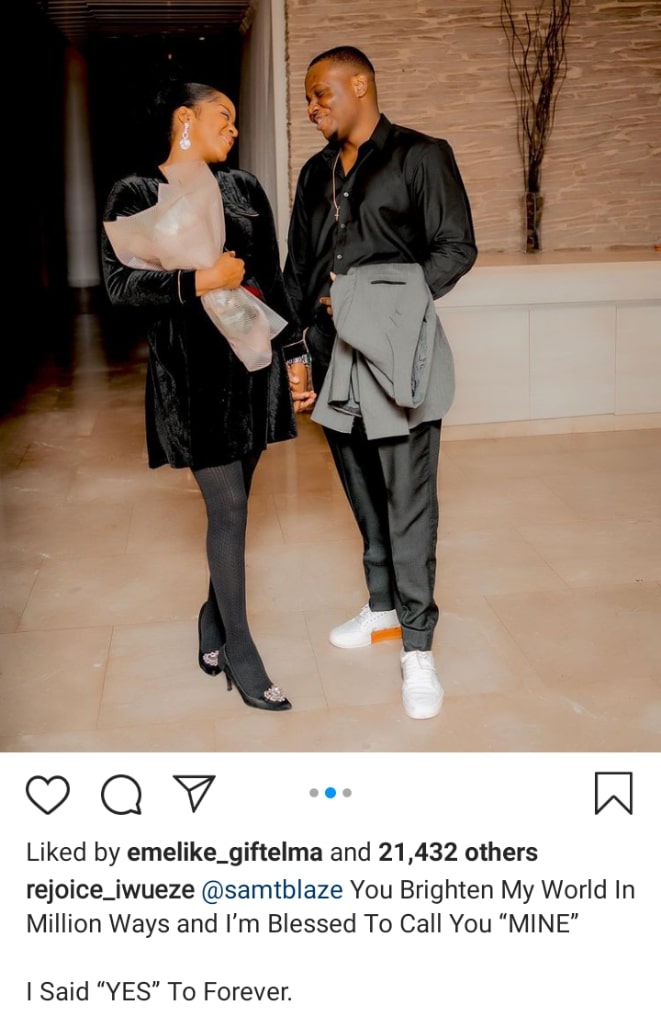 Rejoice shared photos of them together and announced to her fans that they are getting set to tie the knot following their engagement.