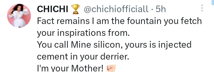 Chichi took to her page to fire back at Phyna by saying that her backside looks injected with cement, adding that Phyna draws inspiration from her.