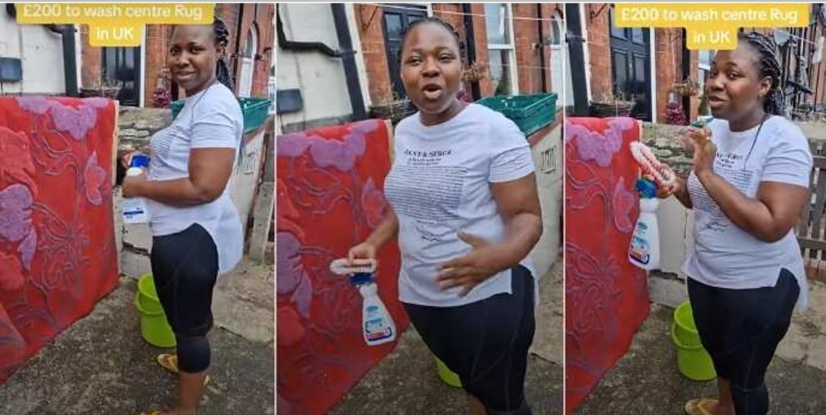 The lady, whose identity remains undisclosed, demonstrated her skill and dedication as she meticulously washed centre rugs in a video that quickly went viral.