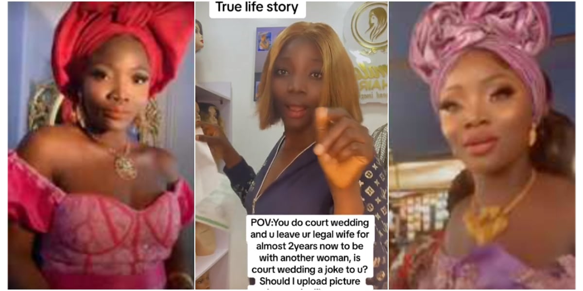 “POV: You do a court wedding and you leave your legal wife for almost 2 years now to be with another woman. Is a court wedding a joke to you? Should I upload pictures so it doesn’t seem like you’re with my legal husband who cannot marry you legally?” Yemilore questioned in the video.