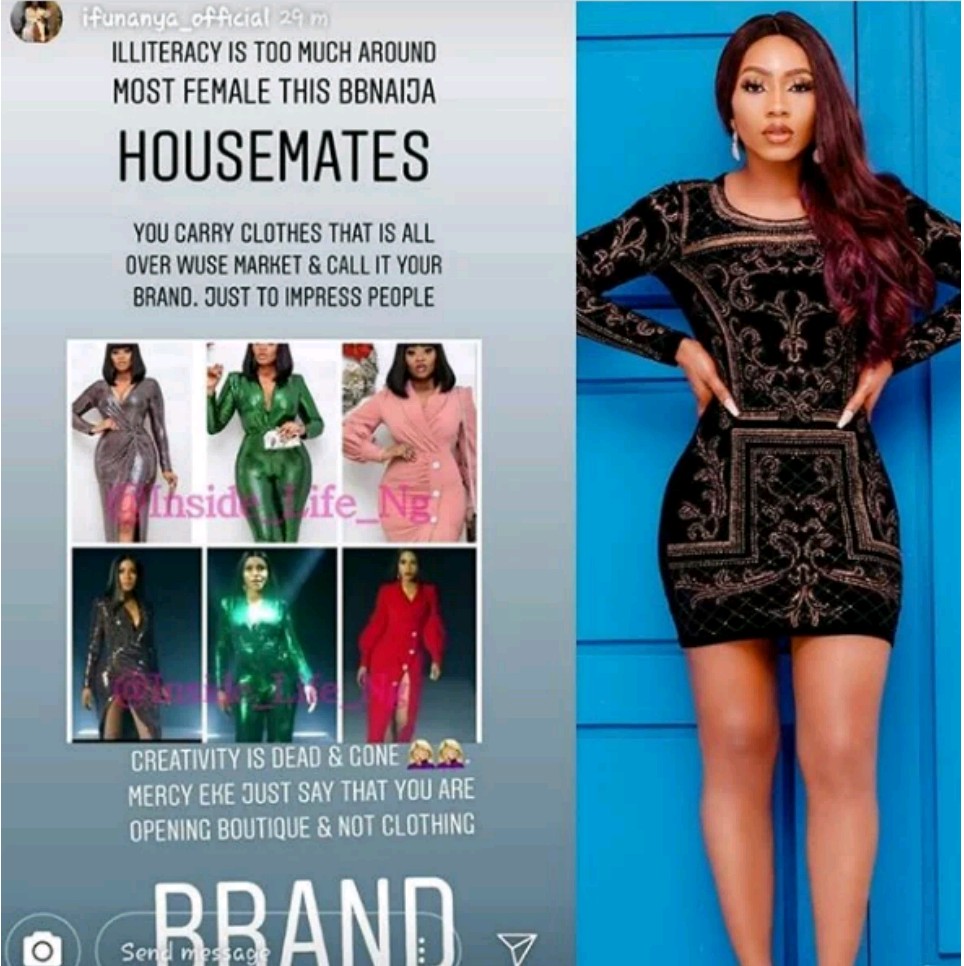 Ifunaya, while reacting to this, called Mercy an illiterate alongside other BBNaija housemates saying what she is doing is more of opening a boutique than a clothing line.
