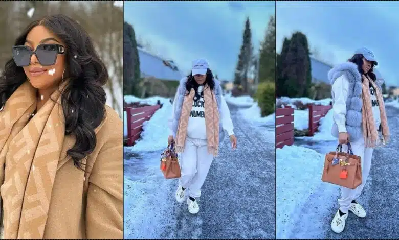 Popular TV host, Toke Makinwa, sets tongues wagging concerning being pregnant following new photos outside Nigeria.