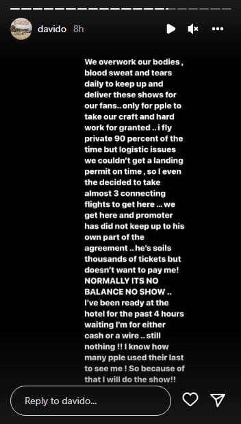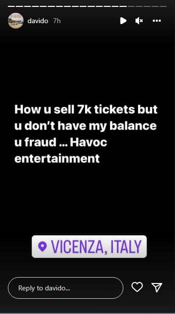 Davido who was infuriated by this disclosed that 7K tickets were sold yet the promoter claims he doesn’t have the money.