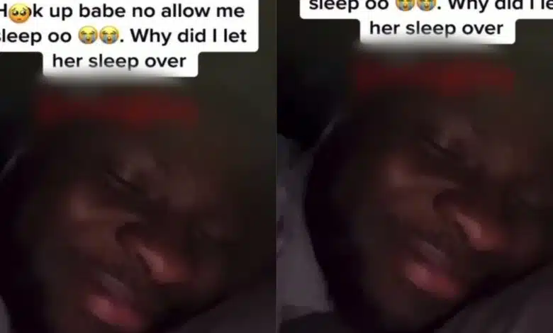 The man captioned the video: “Hookup babe no allow me sleep oo. Why did I let her sleep over.”