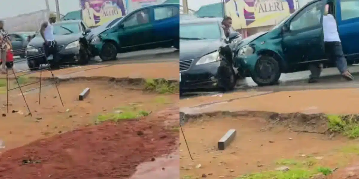 “You go jam timberland boys” – Commotion ensues as motorist collides into Lexus