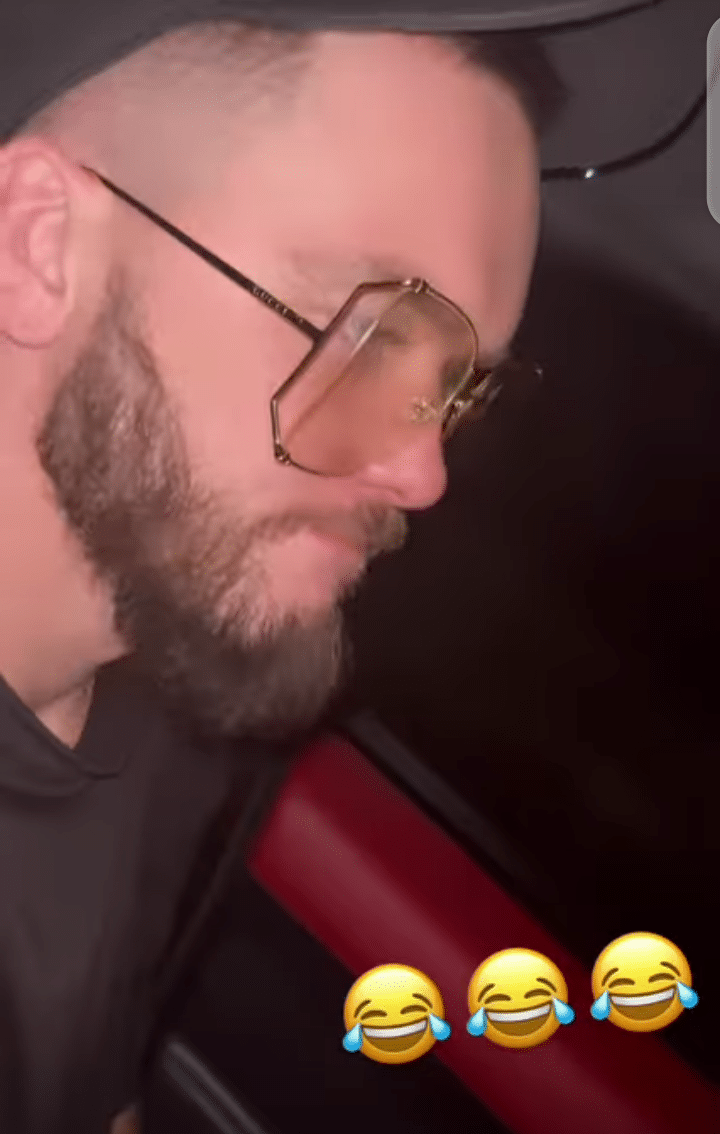 The mum of two dogs shared a video of her late night drive with her fiance, Ryan Taylor, where she tackled him for wearing her sunglasses.