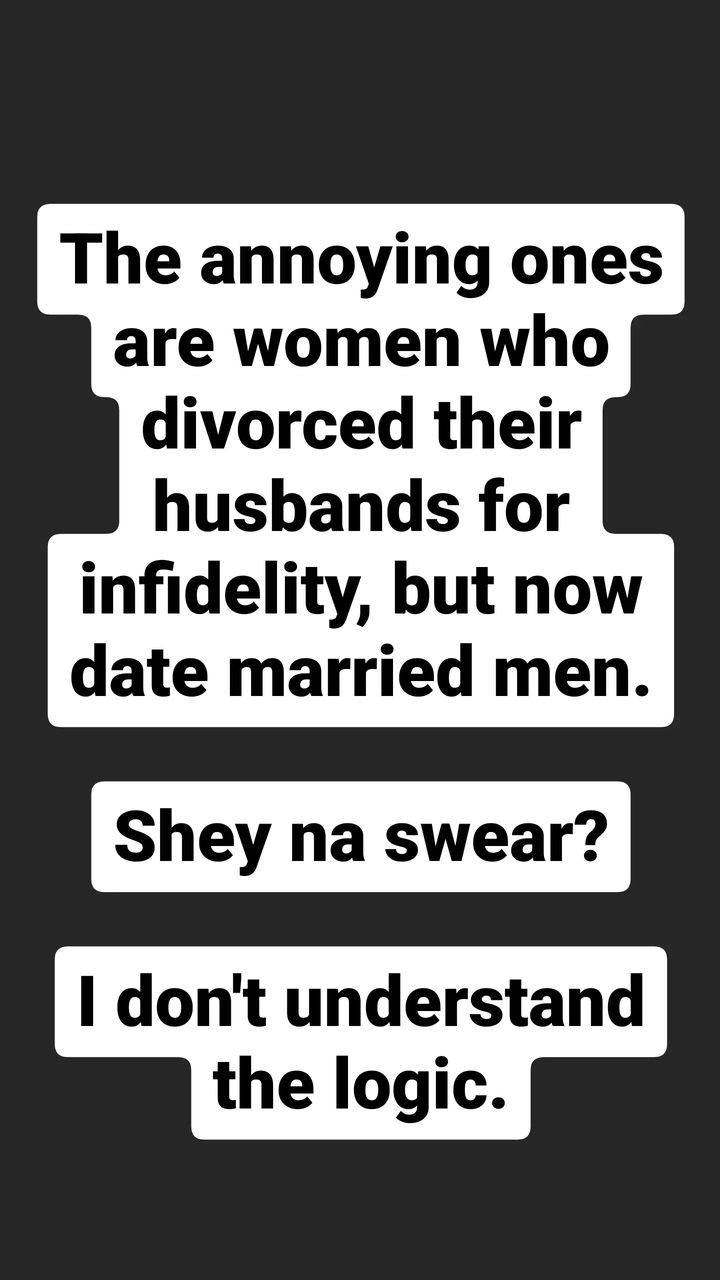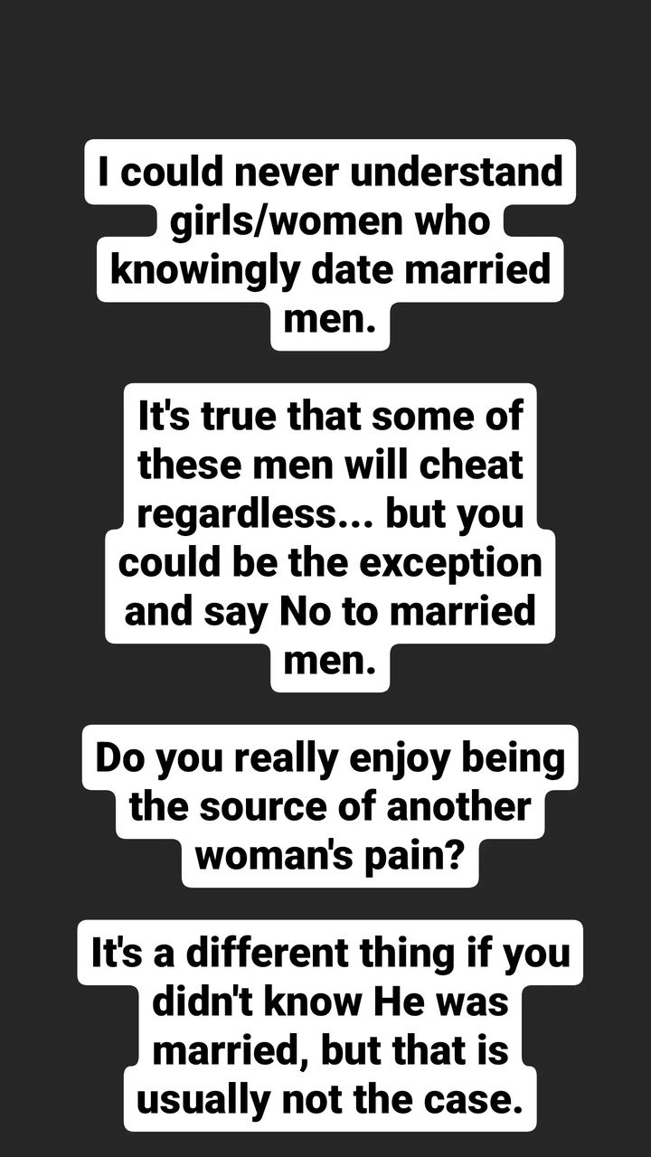 She noted that she cannot seem to comprehend why girls and women knowingly date married men.