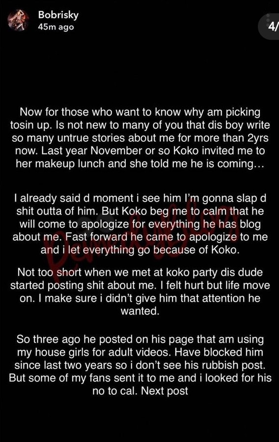 Controversial crossdresser, Idris Olanrewaju Okuneye a.k.a Bobrisky has raged over a write-up by Tosin Silverdam over claims of using househelp for adult movies.