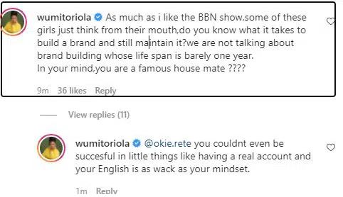 “As much as i like the BBN show,some of these girls just think from their mouth,do you know what it takes to build a brand and still maintain it?we are not talking about brand building whose life span is barely one year.