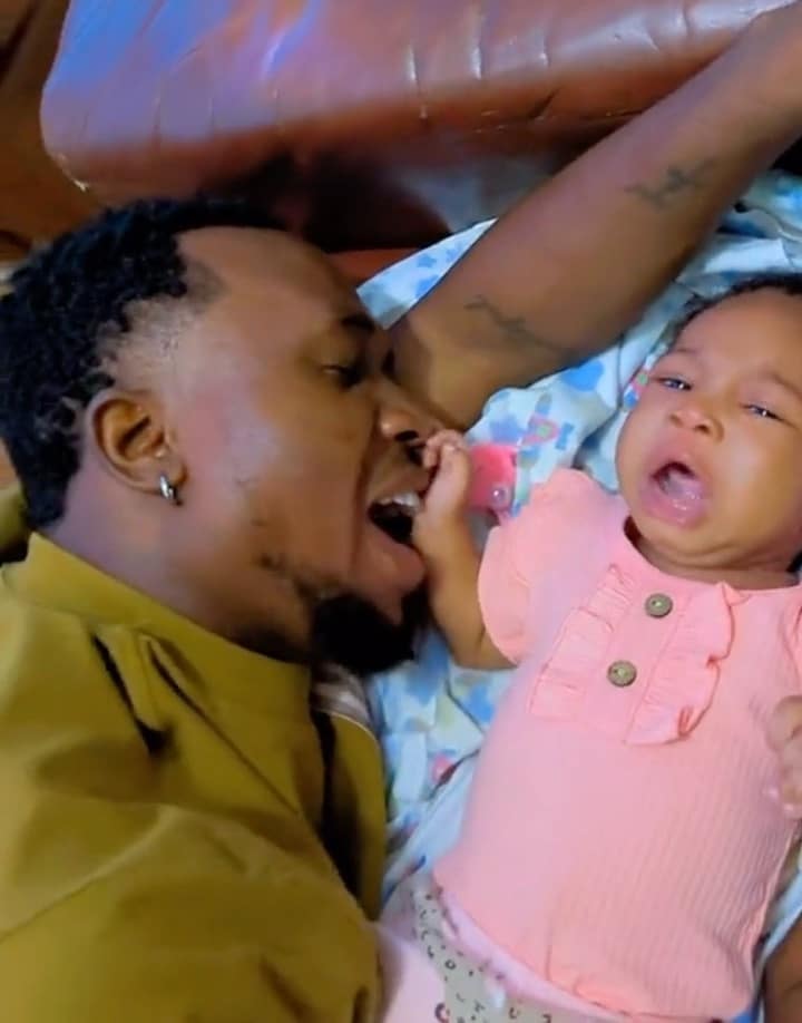 “You think say na only you sabi cry” – Little girl shocked as father joins her in crying