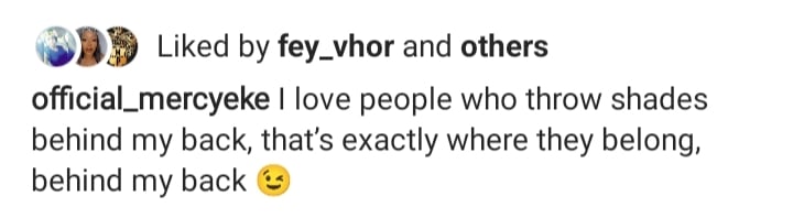 ”I love people who throw shades behind my back, that’s exactly where they belong, behind my back.”