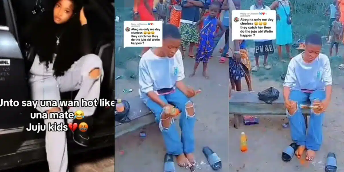 A video online captures some people who had accosted the lady and brought out the charms she supposedly tied her boyfriend with.