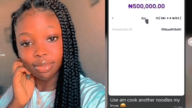 A young lady has reportedly received an alert of 500,000 naira from her boyfriend to cook another noodles after the first one got burnt.