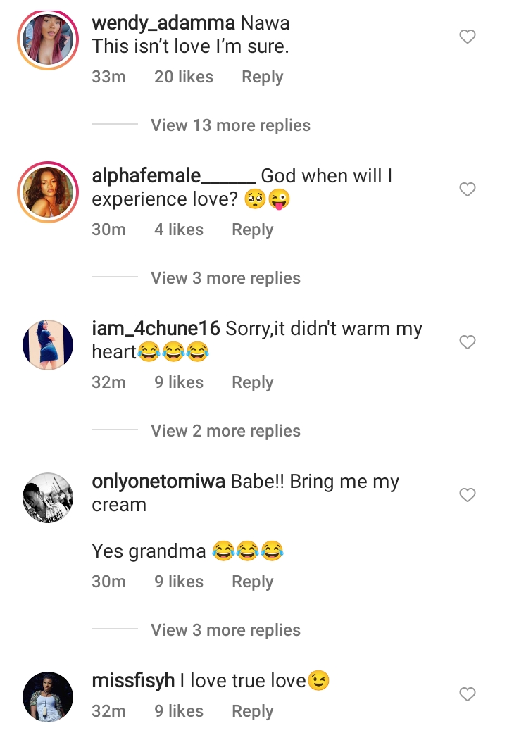 The video has sparked reactions among netizens who debated the intentions of the young man with some deploring the relationship, saying that the lady is old enough to be his mum.