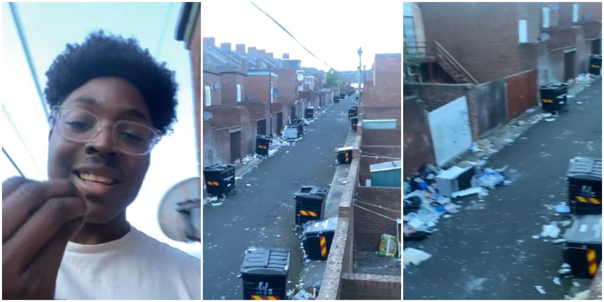 A young African man has taken to social media to express his dismay over the dirty environment in his new neighborhood in the UK.