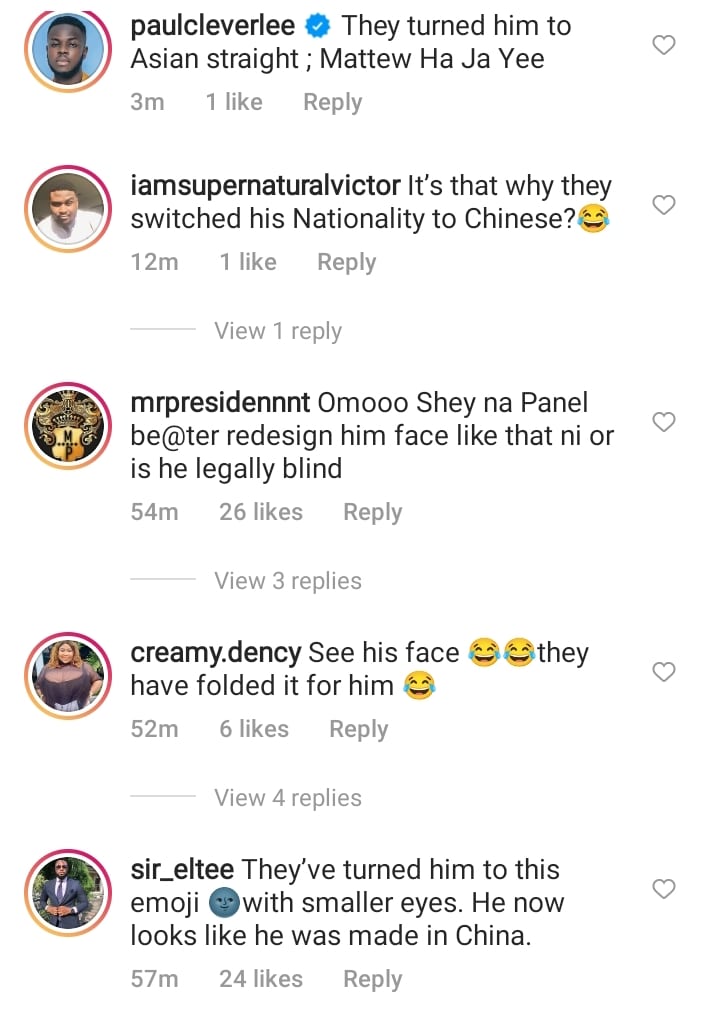 mrpresidennnt wrote: “Omooo Shey na Panel be@ter redesign him face like that ni or is he legally blind”