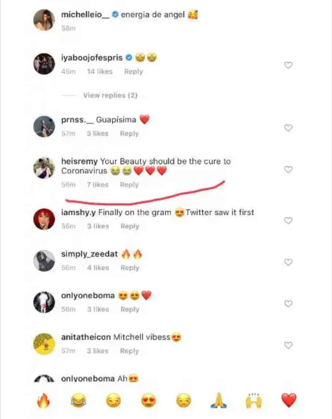 A fan identified as Remi on Instagram commented that her ‘beauty should be the cure to Coronavirus.
